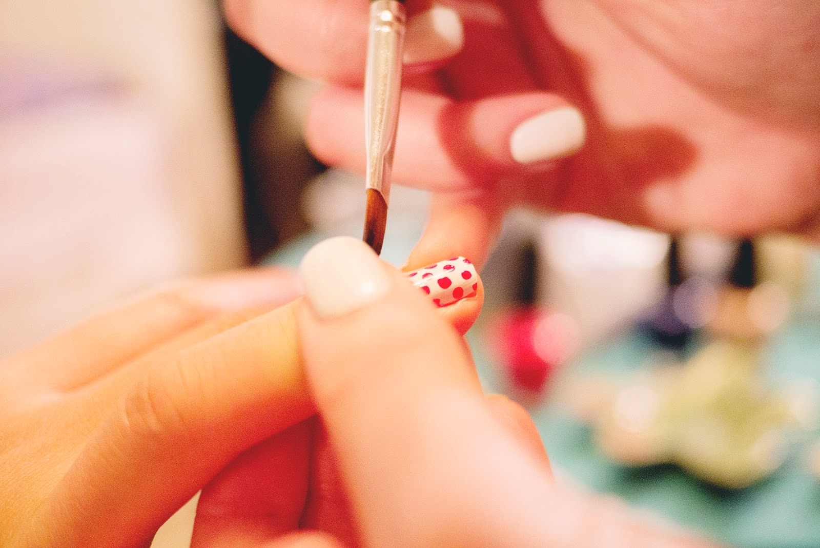 so I tried doing a polka dot pattern, also just a heads up I HAVE NEVER DONE NAILS BEFORE whose idea was this haha idk but someone's gonna regret it